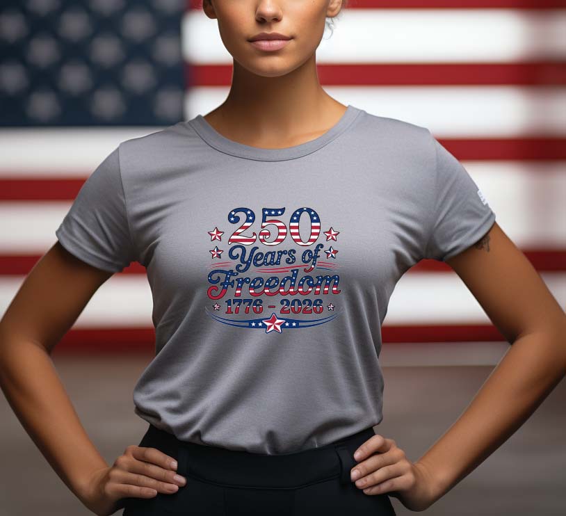 Celebrate a monumental milestone in history with our Patriotic Shirt featuring the powerful phrase "250 Years of Freedom." Crafted from soft, breathable fabric, this stylish top offers all-day comfort while making a bold statement. Perfect for casual outings or as a conversation starter, it embodies pride and resilience. Wear it to commemorate the journey of freedom and inspire others to reflect on the significance of this anniversary. Embrace your voice and style—add this essential piece to your wardrobe today!