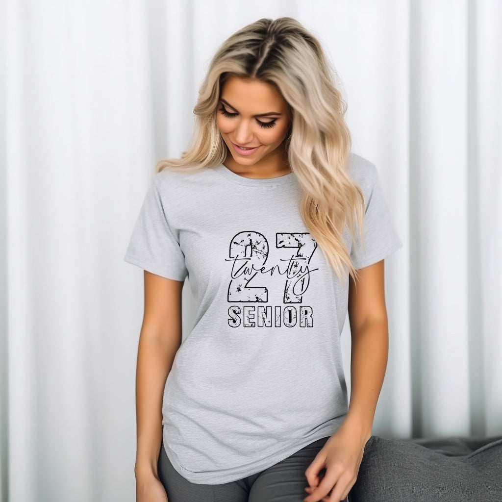 Celebrate your journey to graduation with our stylish gray shirt, proudly emblazoned with "27 Senior." Designed for the graduating class of 2027, this comfortable and trendy top is perfect for showcasing your school spirit. Whether you're attending classes, hanging out with friends, or gearing up for graduation events, this shirt is a must-have addition to your wardrobe. Embrace your senior year in style and make lasting memories with this essential piece!