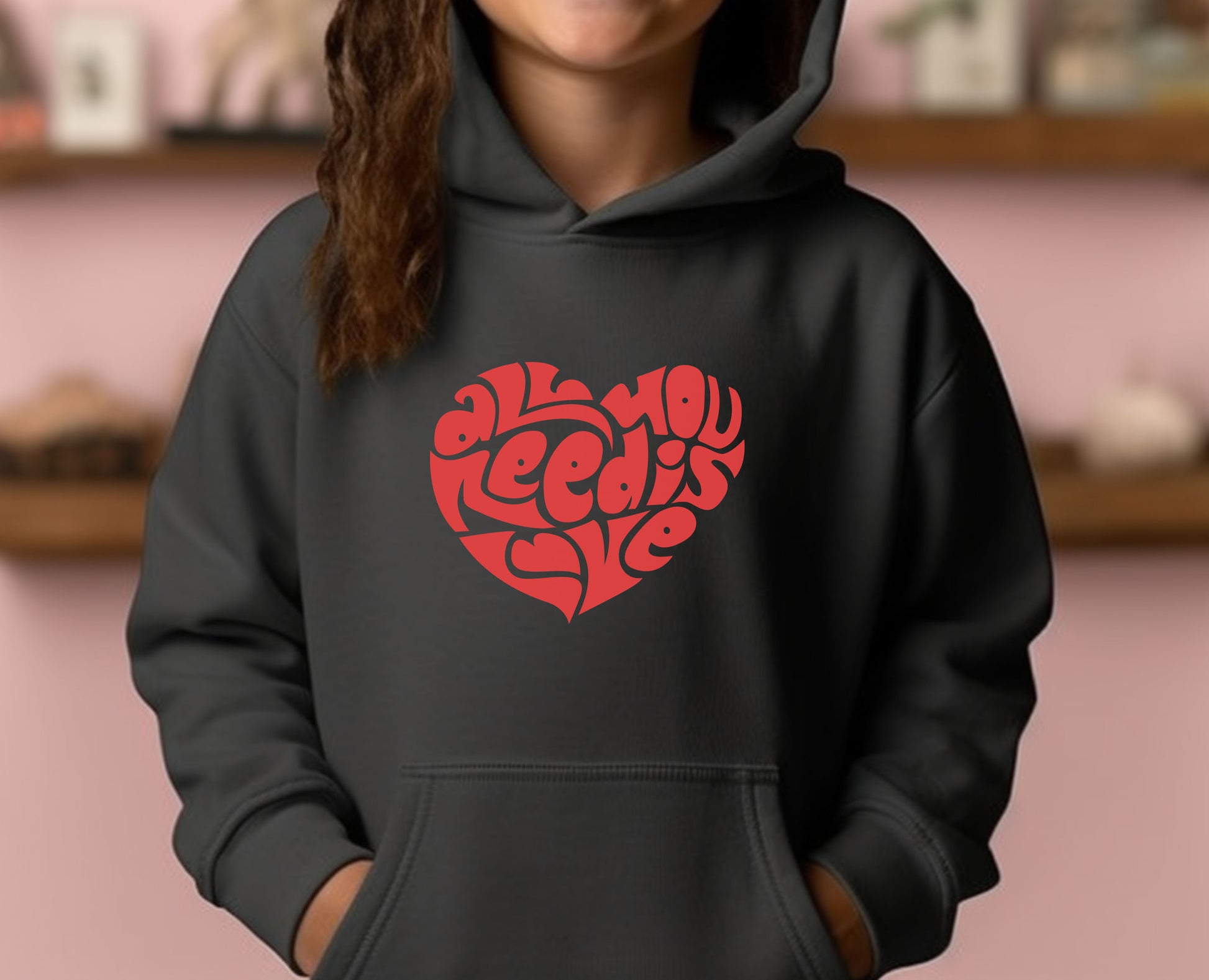 Love is all you need. Get this black shirt in your choice of a crew neck T-shirt, sweatshirt or hoodie in unisex sizes.
