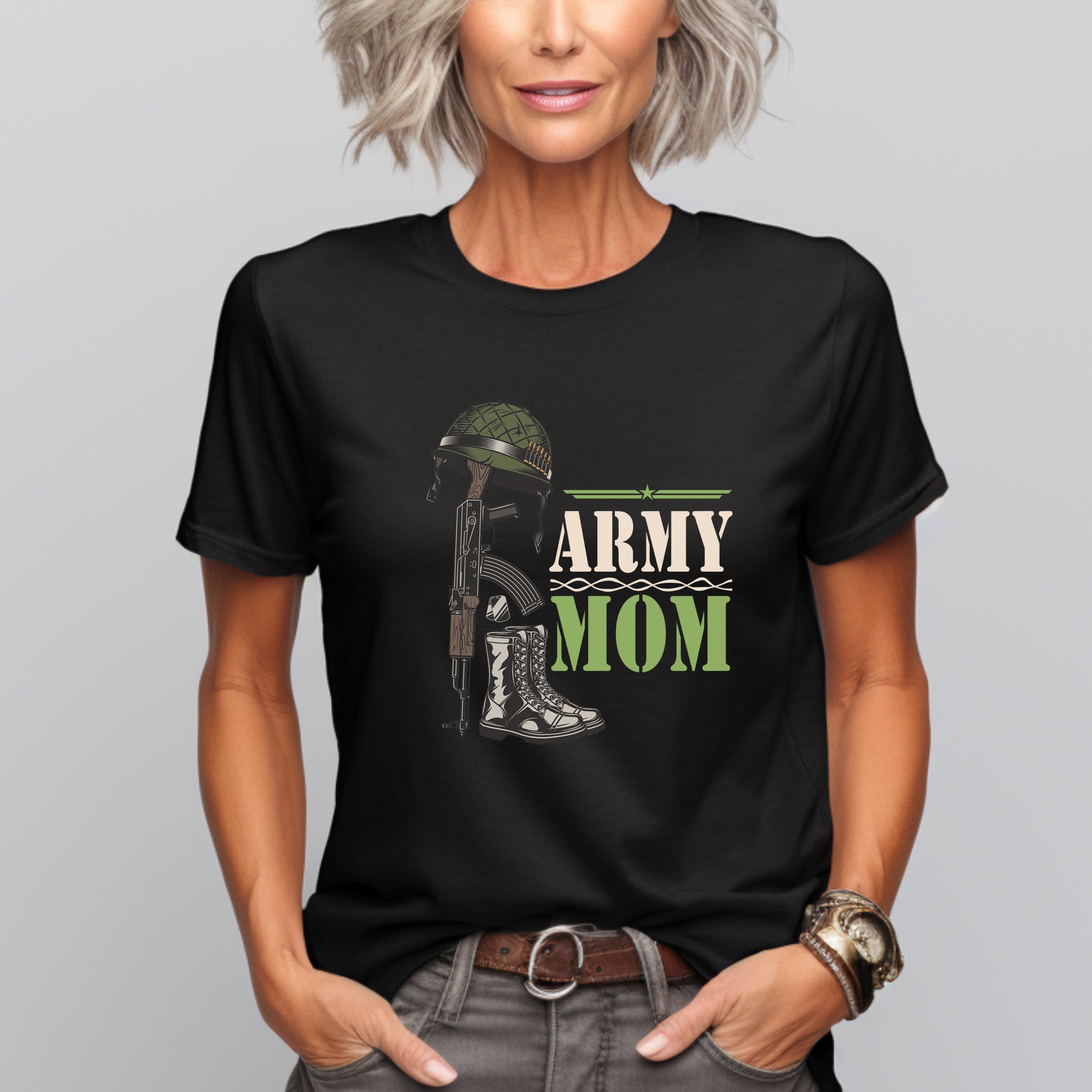 This black shirt is perfect for all proud Army moms! Get it in a crew neck T-shirt, sweatshirt or hoodie in unisex sizes.