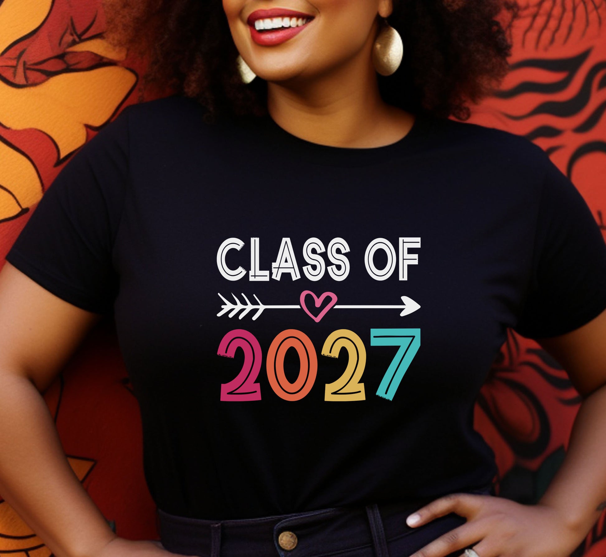 Celebrate your achievement in style with our Arrow Shirt! This sleek and comfortable black shirt features bold lettering that proudly showcases your graduation year, making it the perfect way to commemorate this milestone. Whether you're hanging out with friends, or just lounging at home, this shirt is a versatile addition to your wardrobe. Made from soft, breathable fabric, it ensures all-day comfort while you reminisce about your unforgettable journey. Grab yours today and wear your pride! Get it in a crew neck T-shirt, sweatshirt or hoodie in unisex sizes.