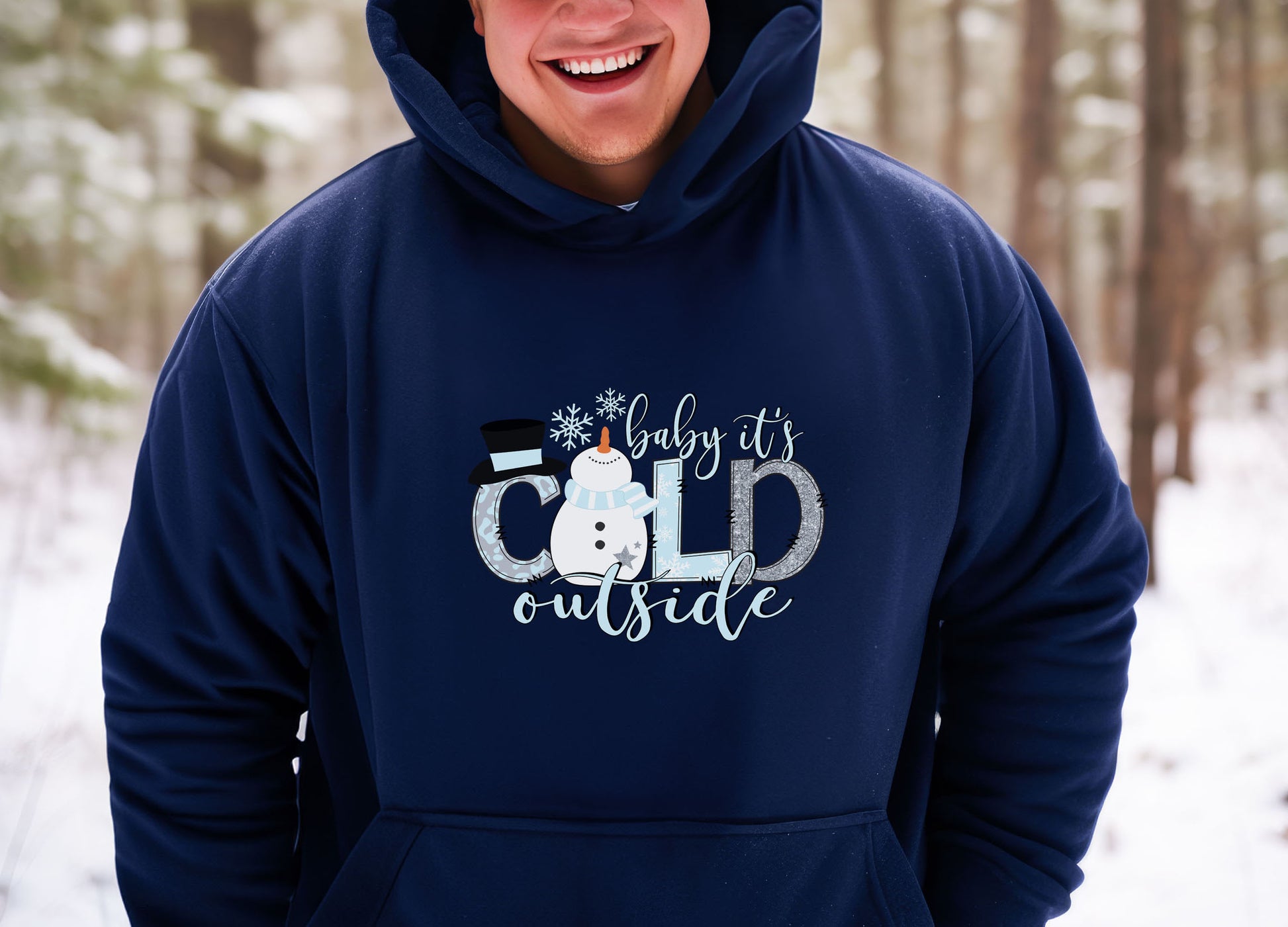 When it's cold outside, warm up in this navy-colored shirt. It's available in either a sweatshirt or hoodie in unisex sizes.