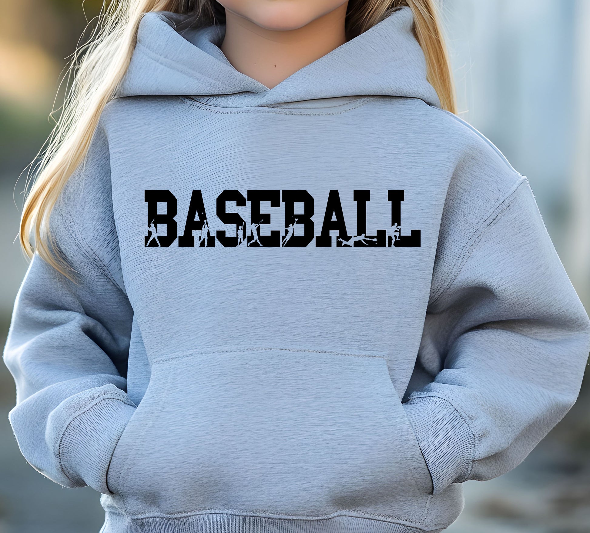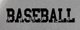 This sporty grey shirt features the word "Baseball" in black with each letter showcasing a baseball player in silhouette. Get it in a crew neck T-shirt, sweatshirt or hoodie in unisex sizes.