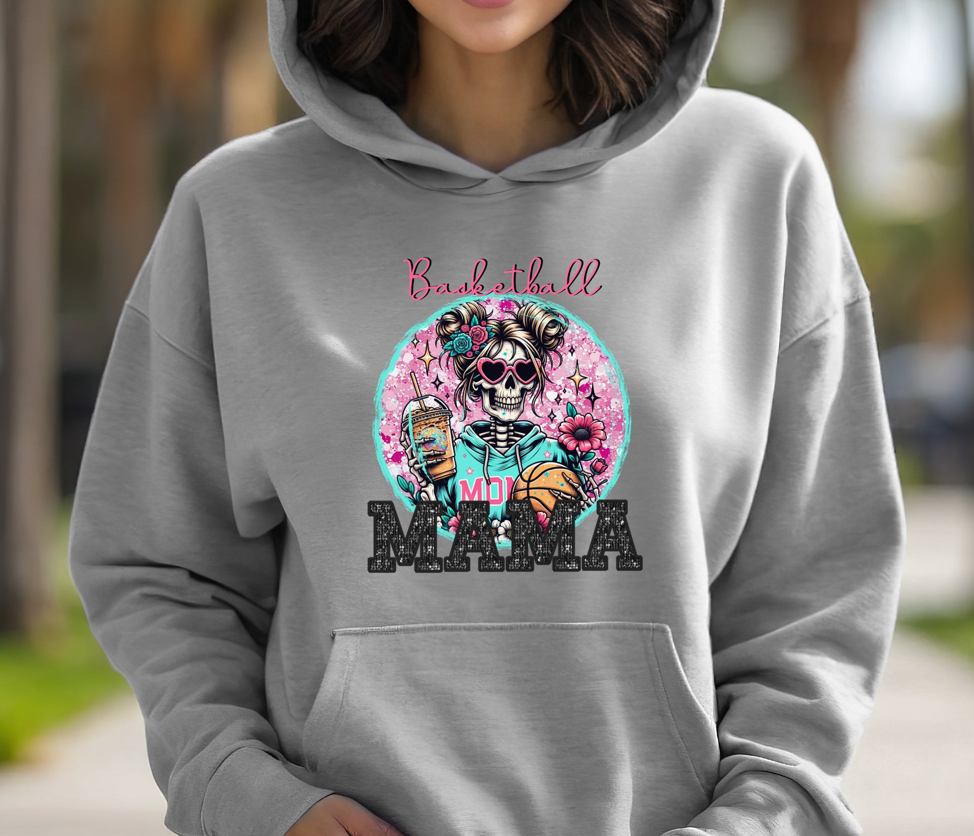 Show off your love for the game with our Basketball Mama Shirt! This stylish gray top features a cool skeleton rocking sunglasses and holding a basketball, making it the perfect blend of fun and sporty. Whether you're cheering from the stands or hitting the court, this shirt is designed for comfort and flair. Made from soft, breathable fabric, it’s ideal for any basketball enthusiast who wants to showcase their passion with a unique twist. Grab yours today and let everyone know that you’re the ultimate basketball mama!
