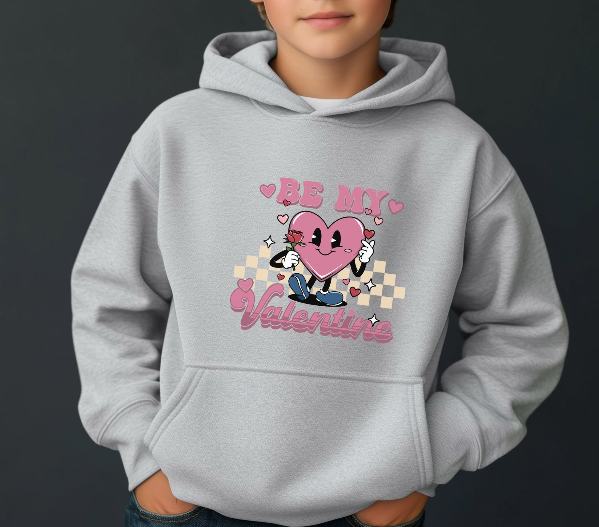Get ready for Valentines Day with this grey shirt. It comes in a T-shirt, sweatshirt or hoodie in kids' unisex sizes.