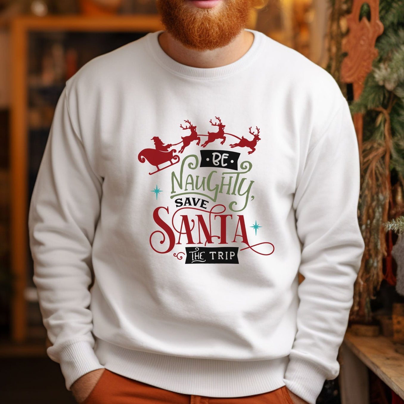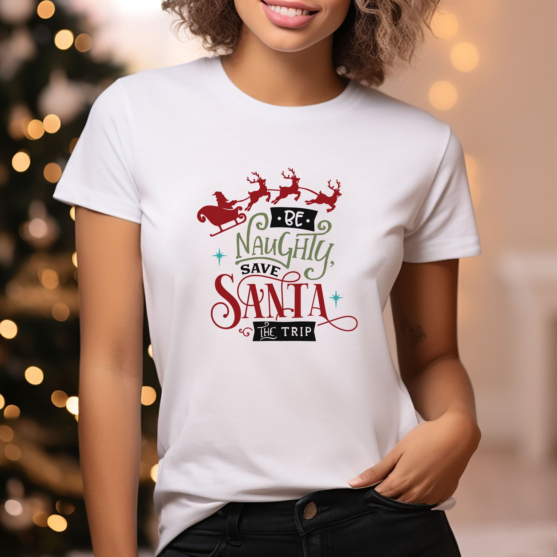 Save Santa the trip this year. This white shirt comes in your choice of a crew neck T-shirt, sweatshirt or hoodie in unisex sizes.