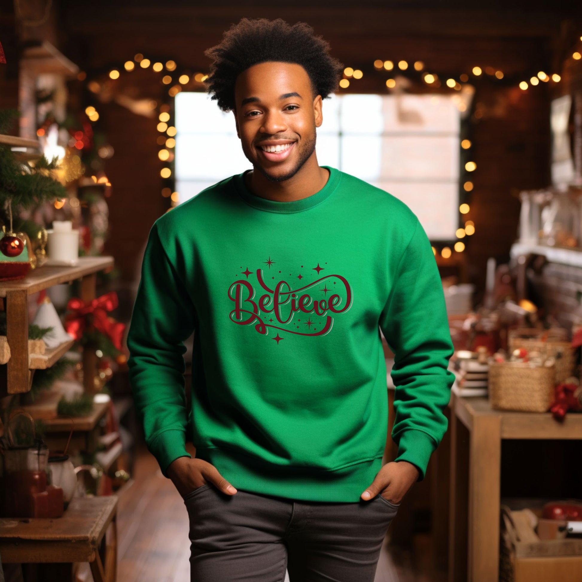 Do you believe? This Irish Green shirt comes in your choice of a crew neck T-shirt, sweatshirt or hoodie in unisex sizes.