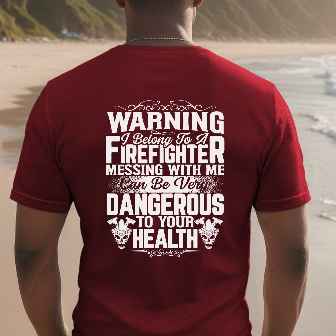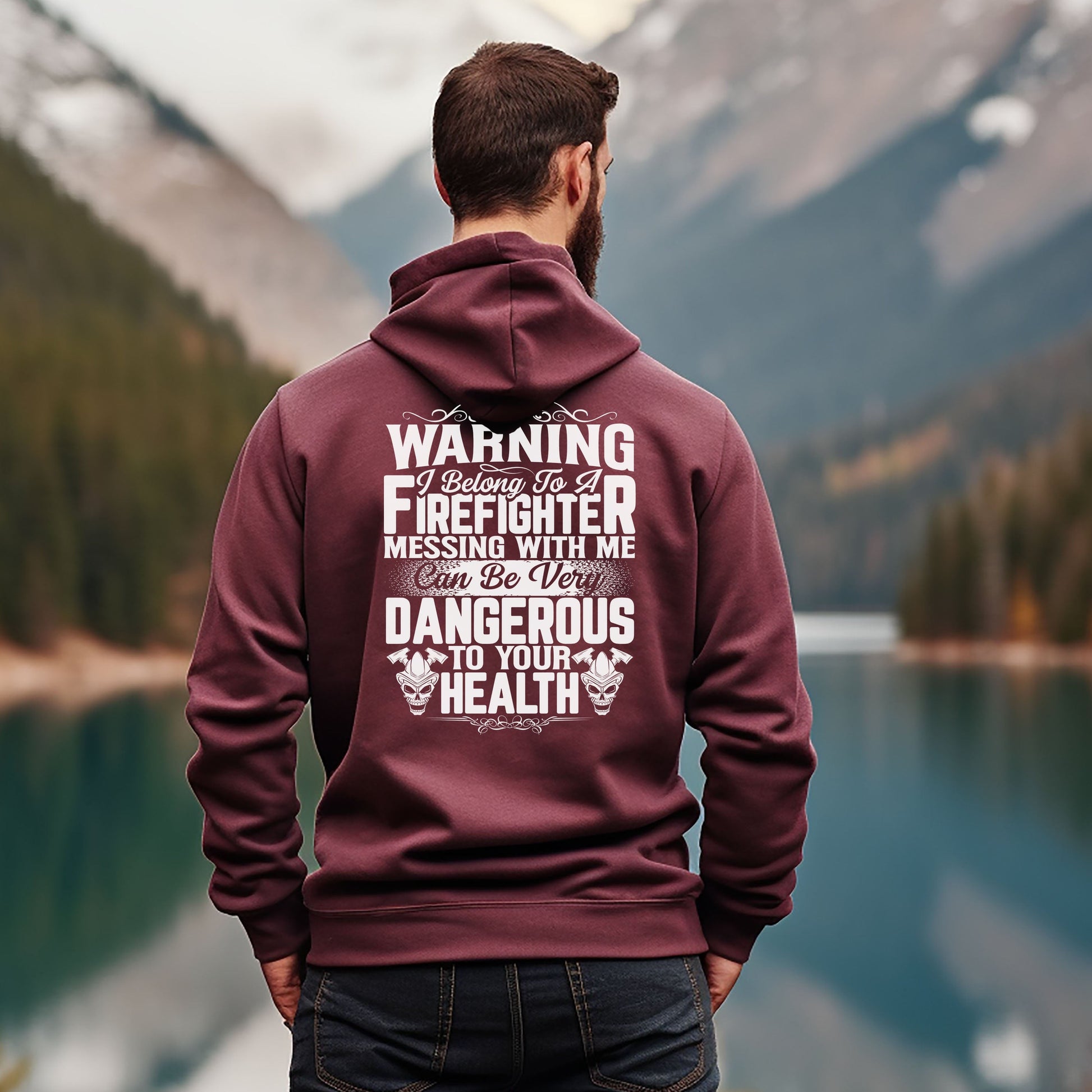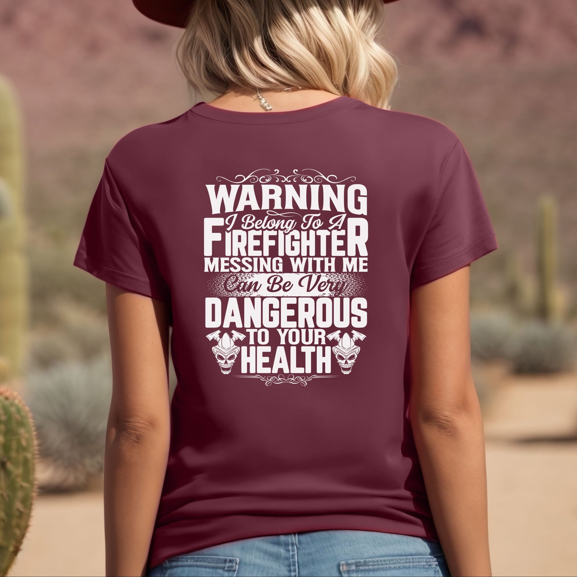 Show the world that you belong to a firefighter with this maroon shirt. It comes in a T-shirt, sweatshirt or hoodie in unisex sizes.