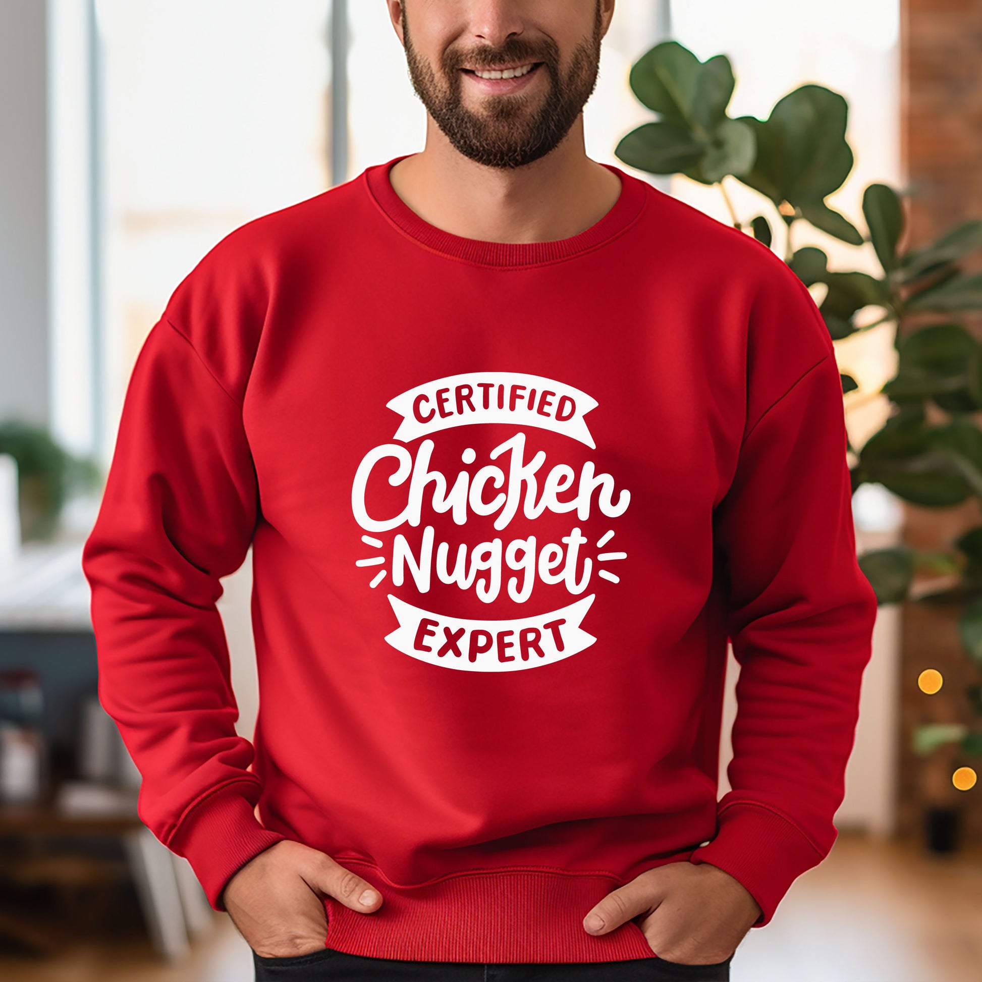 Announce to everyone at work that you are a chicken nugget expert. This red top comes in your choice of a T-shirt or sweatshirt in unisex sizes.