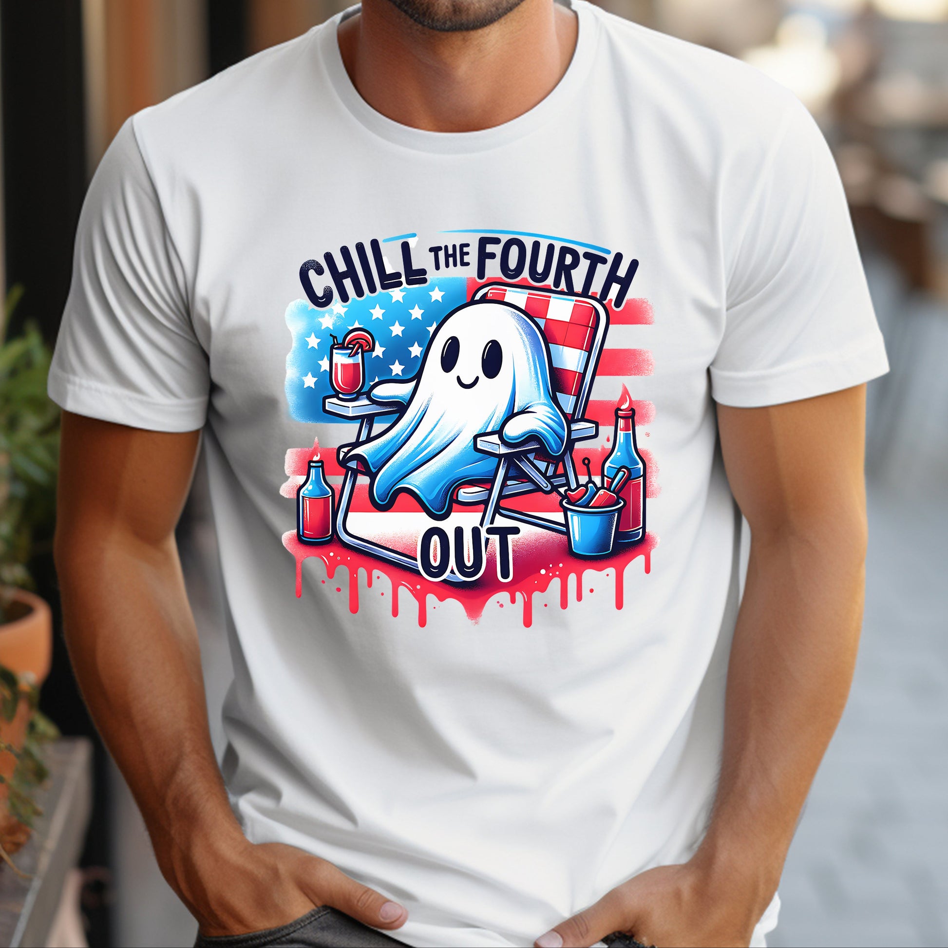 Embrace your laid-back vibe with our "Chill The Fourth Out" Ghost T-Shirt! This stylish white tee features a playful ghost graphic that perfectly captures the essence of relaxation and fun. Made from soft, breathable fabric, it ensures all-day comfort whether you're lounging at home or out with friends. Pair it with your favorite jeans or shorts for an effortlessly cool look that speaks volumes about your chill personality. Get ready to turn heads and spread good vibes—grab yours today!