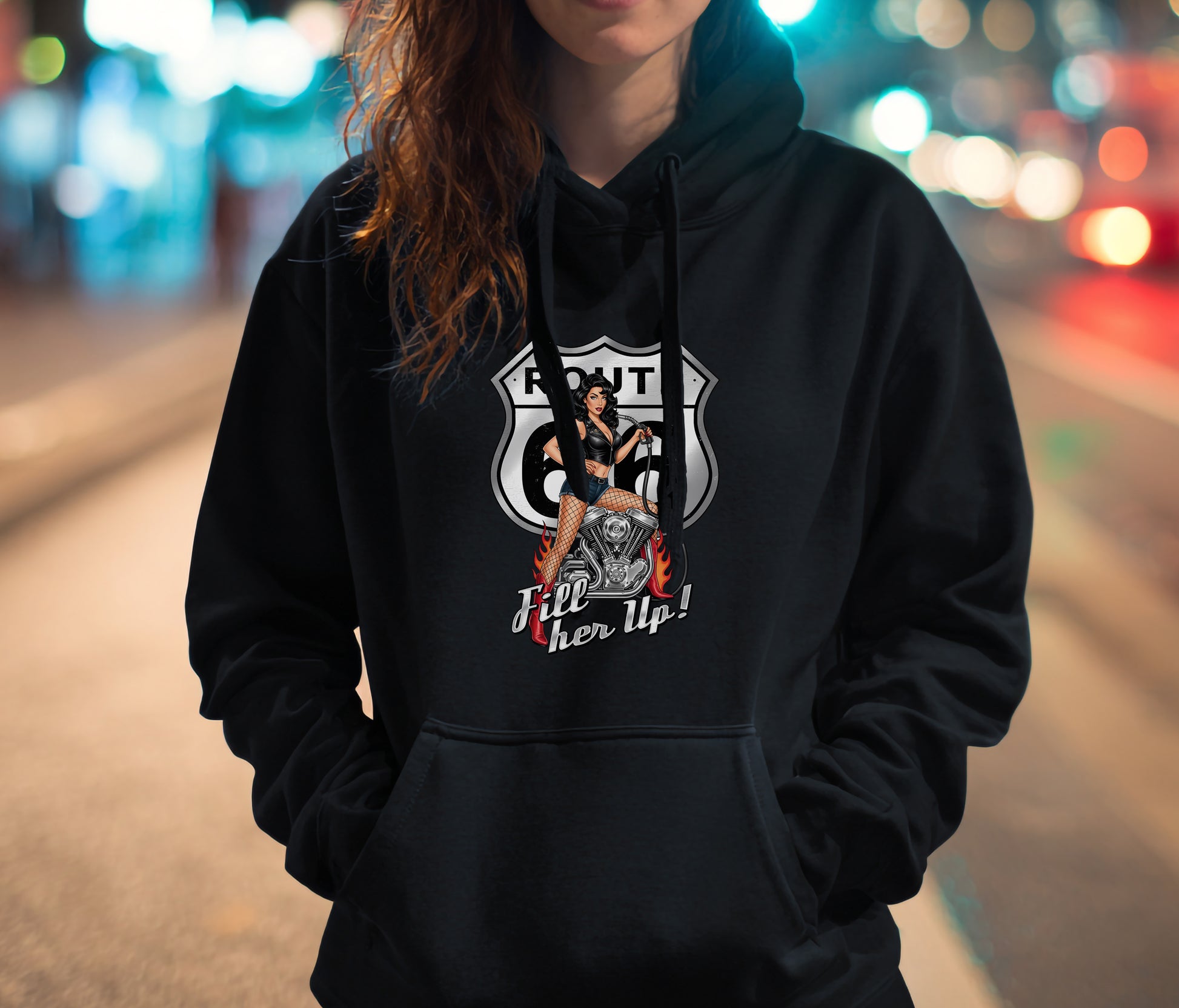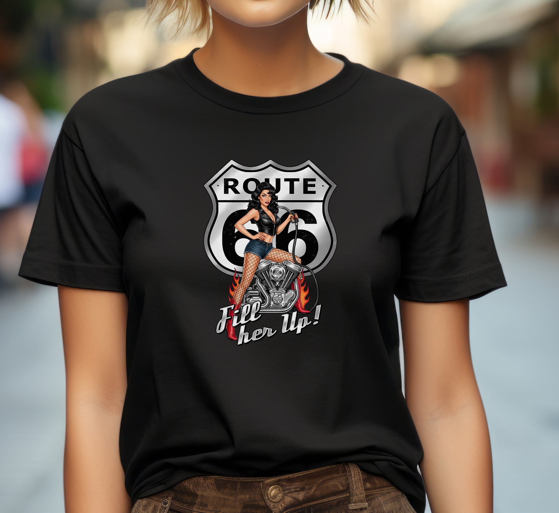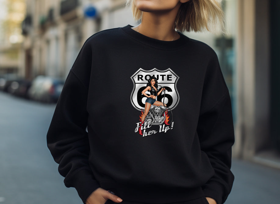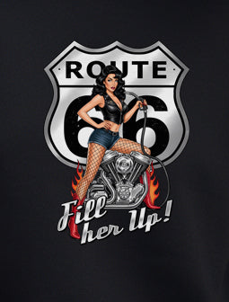 Rev up your wardrobe with our Route 66 Fill Her Up Shirt! This sleek black top features a stunning pin-up girl, capturing the spirit of the open road and vintage Americana. Made from soft, breathable fabric, it offers all-day comfort whether you're cruising down the highway or hanging out with friends. Perfect for motorcycle enthusiasts and retro lovers alike, this shirt is a must-have for anyone looking to add a touch of nostalgia to their style. Get ready to turn heads and embrace the adventure—grab yours today!