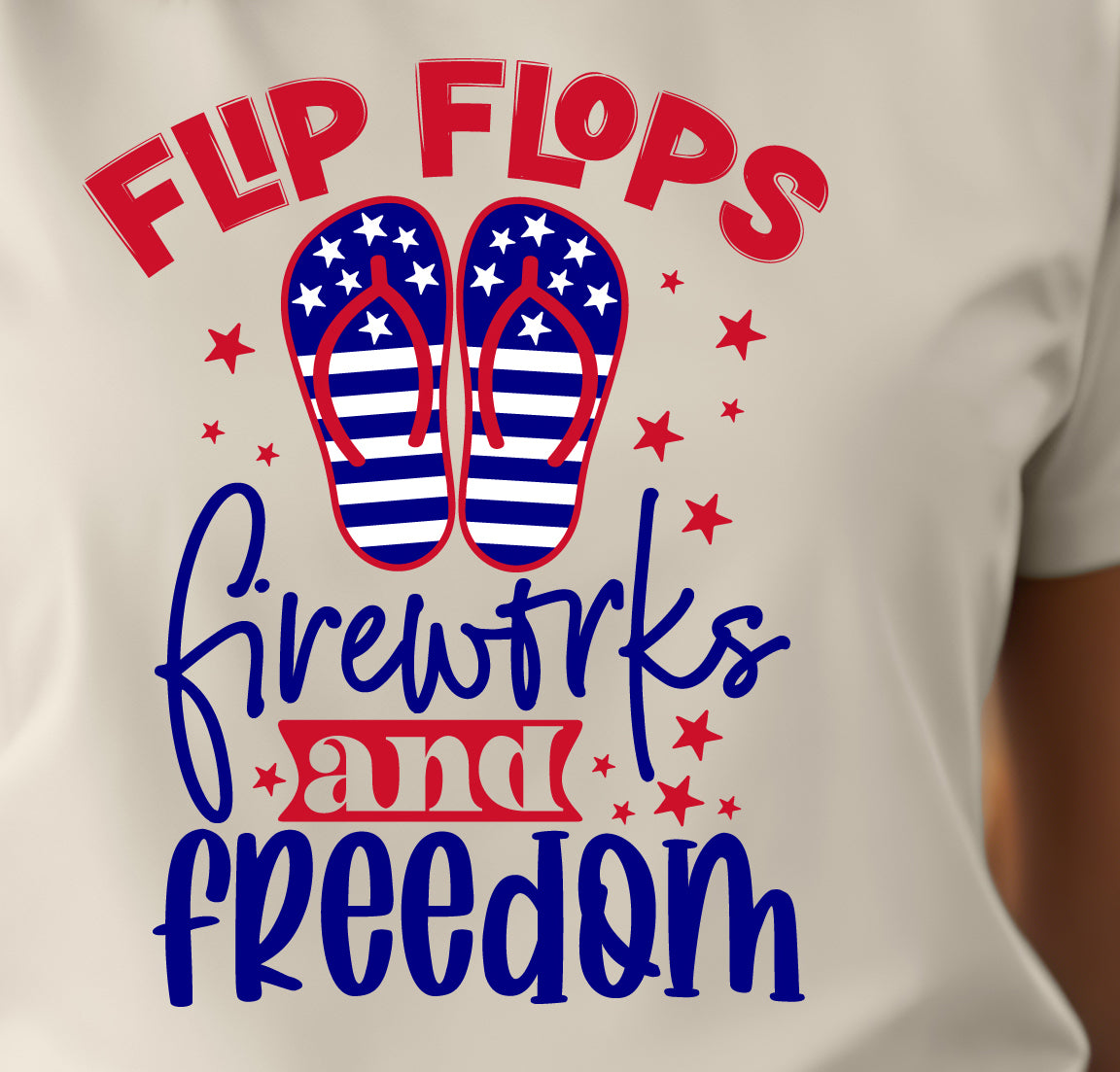 Embrace the spirit of summer with our Flip Flops, Fireworks and Freedom T-Shirt! Crafted from soft, breathable fabric, this tee is perfect for beach days, barbecues, or just lounging in the sun. The vibrant design captures the carefree essence of flip-flop season, making it a must-have addition to your warm-weather wardrobe. Whether you're pairing it with shorts or a flowy skirt, this shirt will keep you stylish and comfortable all day long. Slip into freedom and let your laid-back vibe shine!