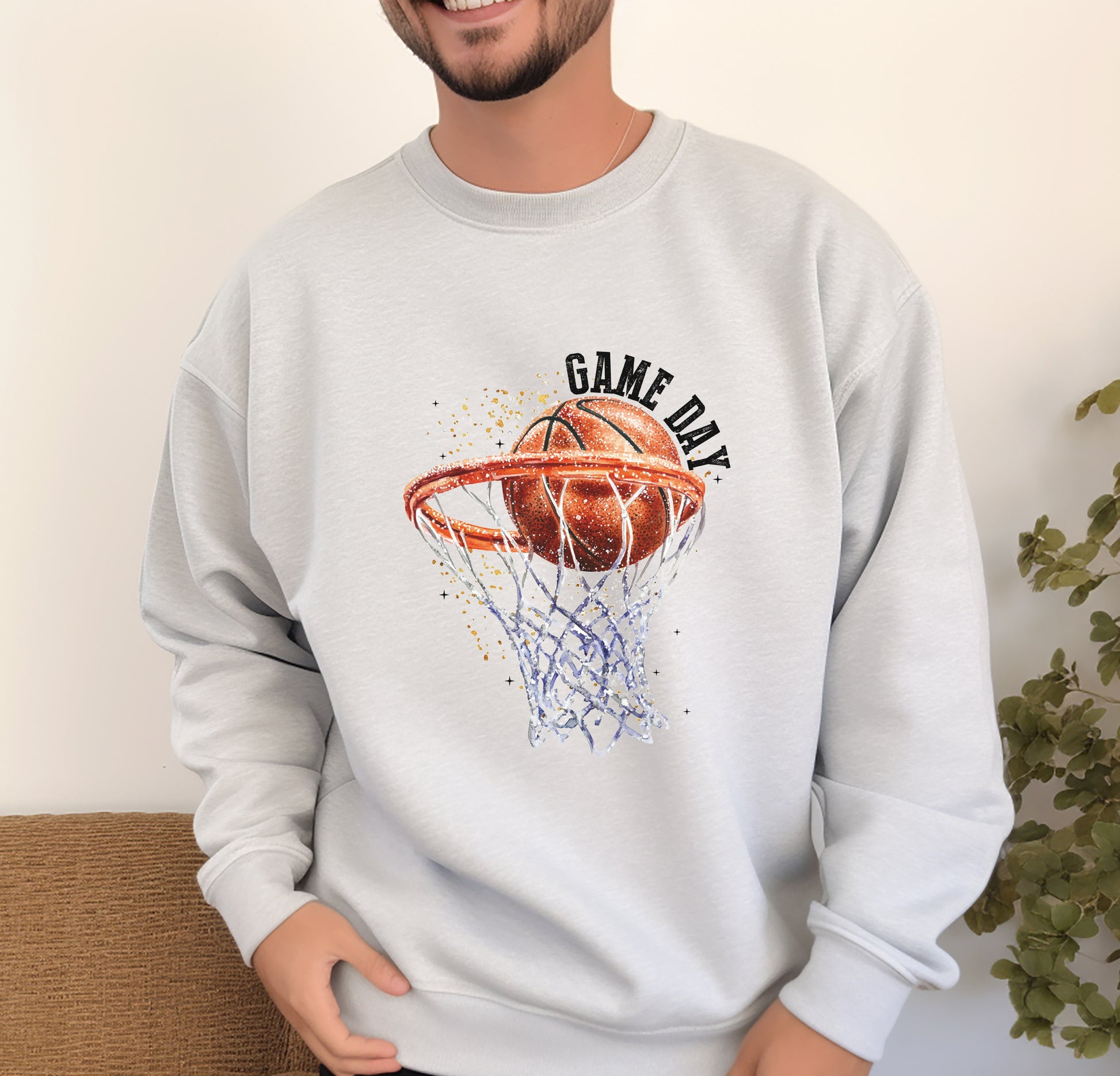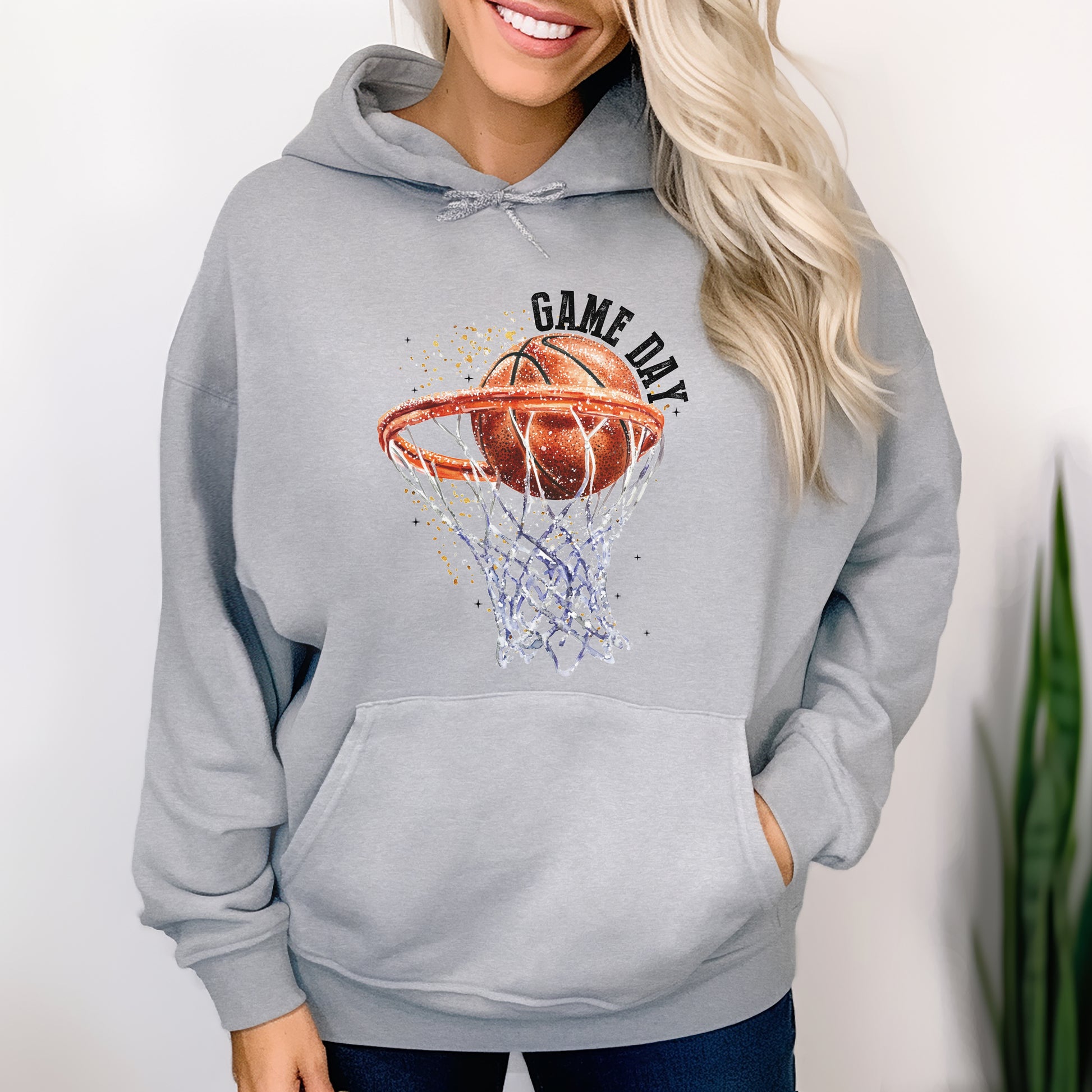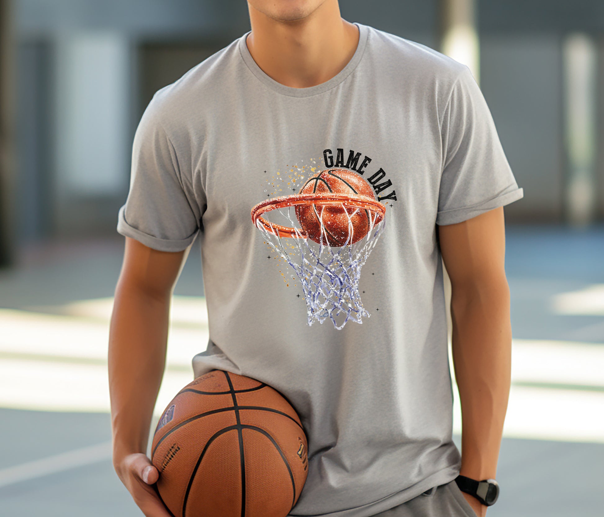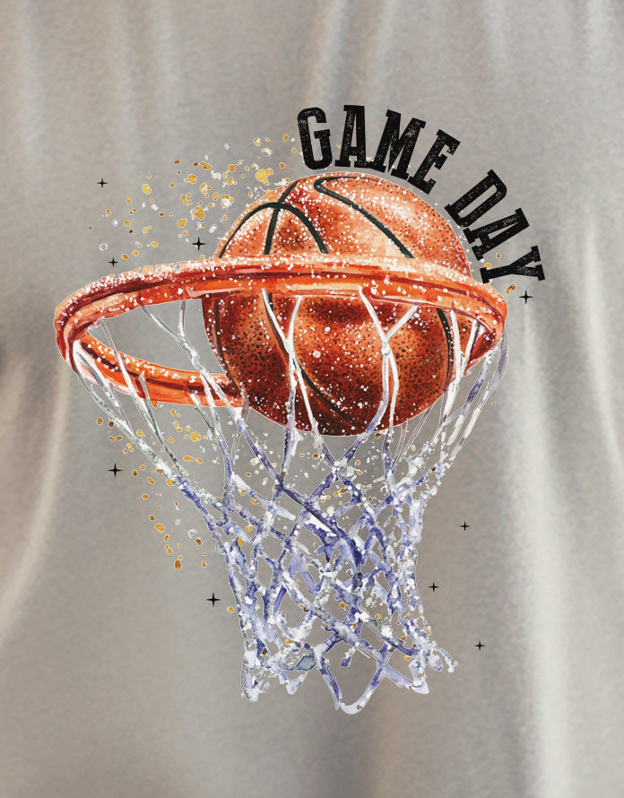Elevate your game day style with our Game Day Basketball Shirt! This sleek gray top features a dynamic basketball hoop graphic paired with bold "Game Day" lettering, making it the perfect choice for fans and players alike. Crafted from soft, breathable fabric, it ensures all-day comfort whether you're hitting the court or cheering from the stands. Show off your love for the game and get ready to score some style points!