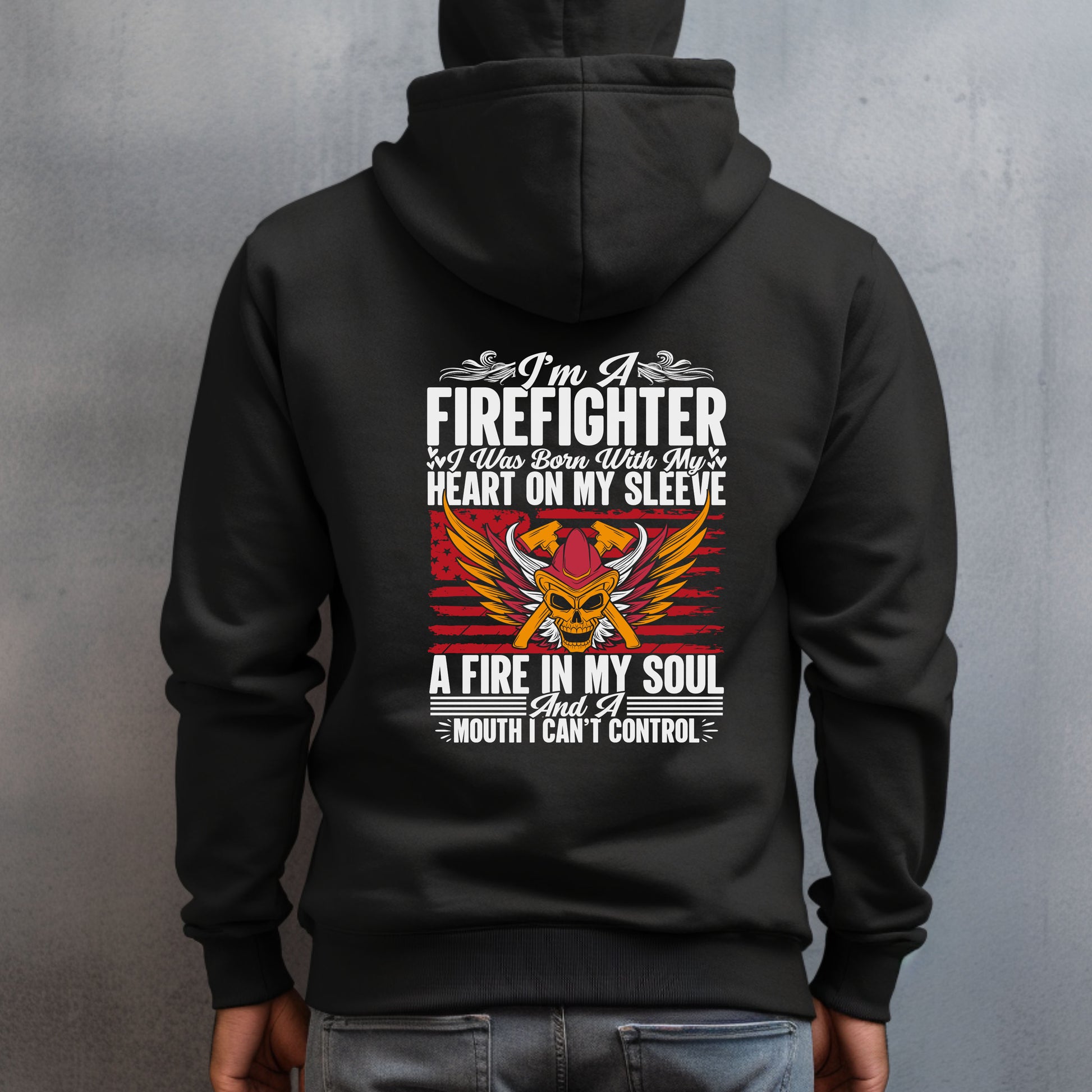 This black shirt is available in a crew neck T-shirt, sweatshirt or hoodie in unisex sizes.