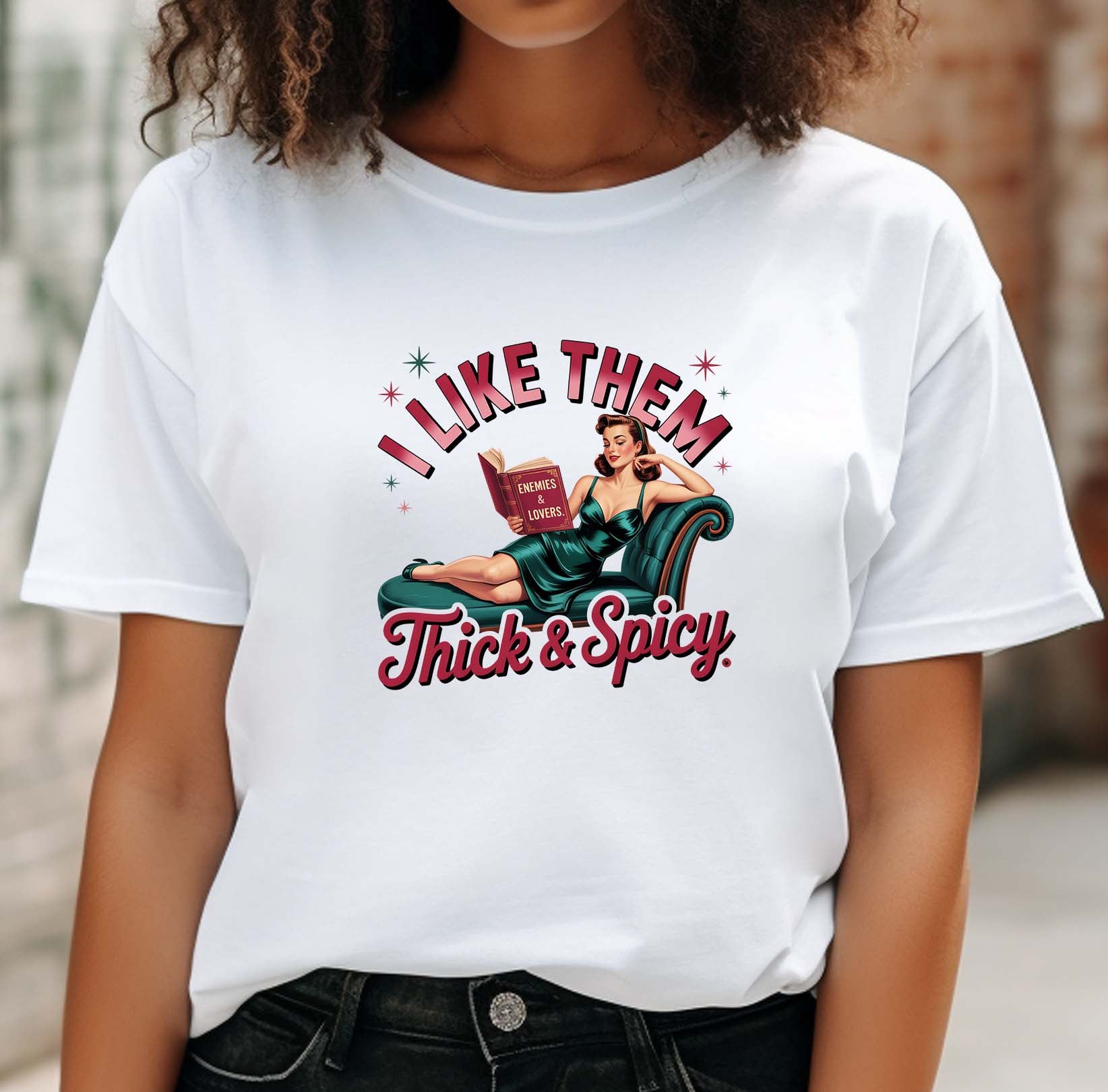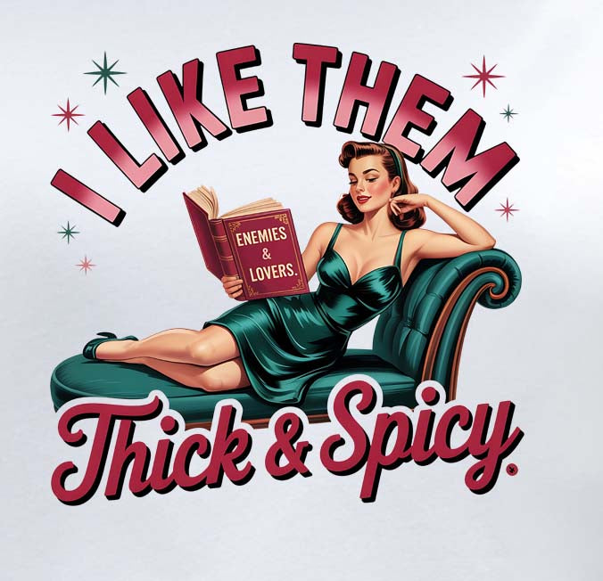 Turn heads and spark conversations with our "I Like Them Thick and Spicy" white shirt, featuring a playful pin-up girl. This stylish top is perfect for book lovers who appreciate a little sass and a lot of personality. Made from soft, breathable fabric, it offers all-day comfort whether you're lounging at home or out on the town. Embrace your love for spicy literature and add a dash of fun to your wardrobe—grab yours today and let your style tell your story!