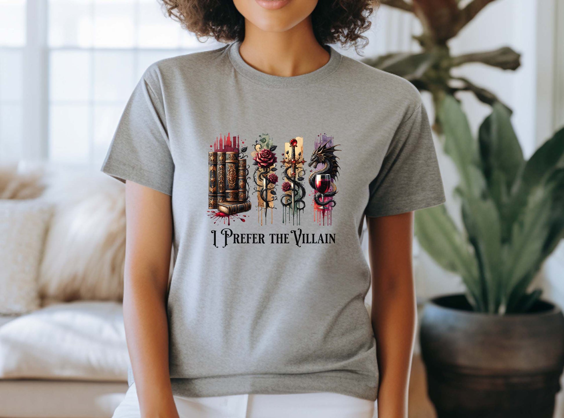 The villain is usually so much better than the hero! This grey shirt will let everyone know which one you prefer! It comes in your choice of a crew neck T-shirt, sweatshirt or hoodie in unisex sizes!