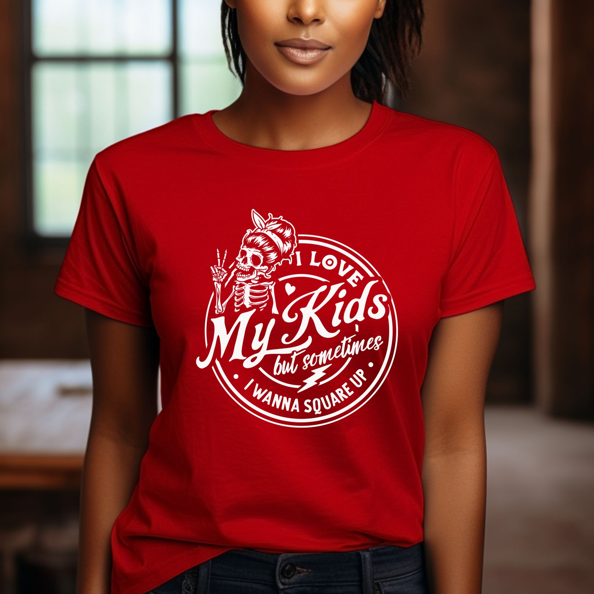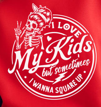 Unleash your inner mom with our hilarious "I Love My Kids But Sometimes I Wanna Square Up" red shirt! This vibrant top is perfect for those days when parenting feels like a boxing match. Made from soft, breathable fabric, it offers all-day comfort while showcasing your sense of humor. Whether you're running errands or enjoying a playdate, this shirt is sure to spark smiles and nods of understanding from fellow moms. Embrace the fun side of motherhood and grab yours today—because every mom deserves a little laughter!