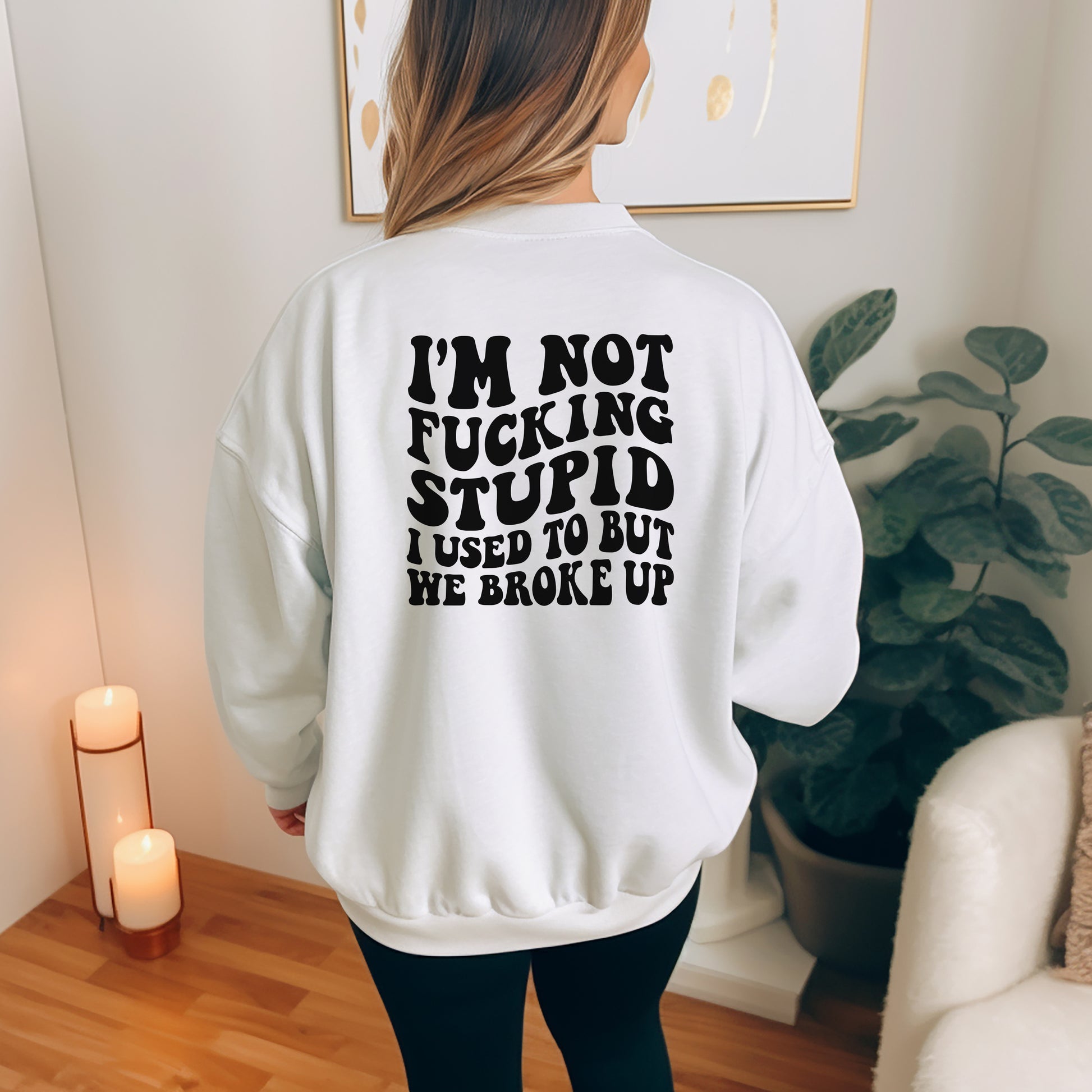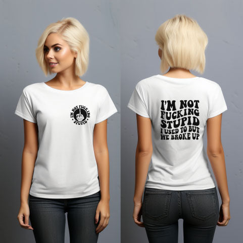 Make a bold statement with our hilarious "I'm Not F*cking Stupid, I Used To But We Broke Up" shirt! This funny white shirt is perfect for those who appreciate a good laugh and want to showcase their witty side. Made from soft, breathable fabric, it offers all-day comfort whether you're out with friends or lounging at home. Wear it to spark conversations, break the ice, or simply to express your unique personality. Grab yours today and let the world know you’ve got a sense of humor!