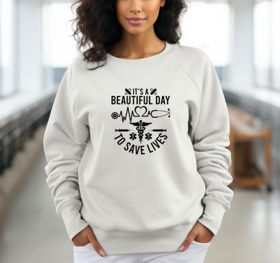 Celebrate the spirit of healthcare with our "It's a Beautiful Day to Save Lives" shirt. Crafted from soft, breathable fabric, this white shirt not only offers comfort during long shifts but also serves as a daily reminder of the impact health care workers have on their patients' lives. Its stylish design makes it perfect for both work and casual outings, allowing you to showcase your passion for health care wherever you go. Embrace your calling and inspire others with this empowering top—order yours today!