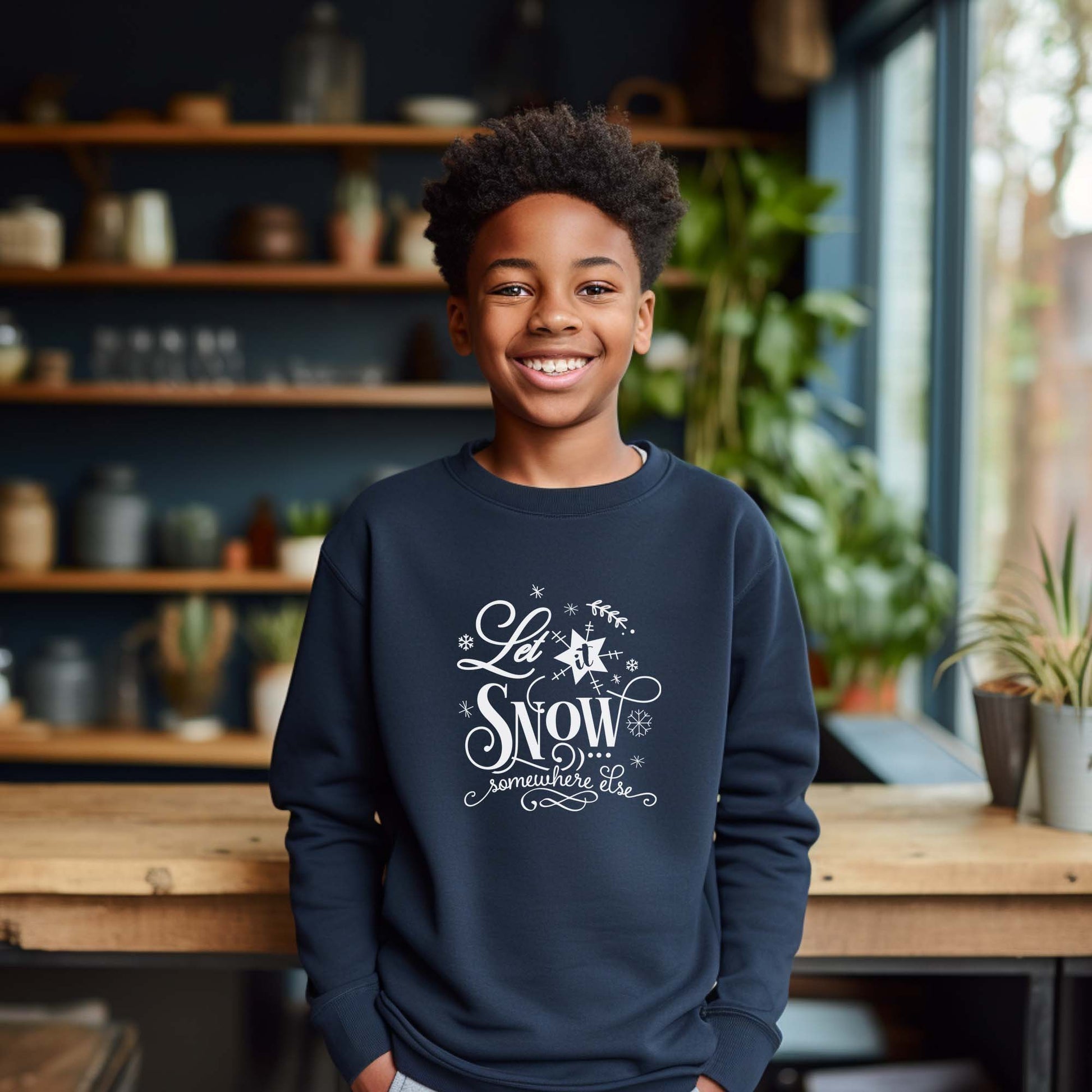 Do you like the snow? Get this navy shirt in either a sweatshirt or hoodie in kids unisex sizes.