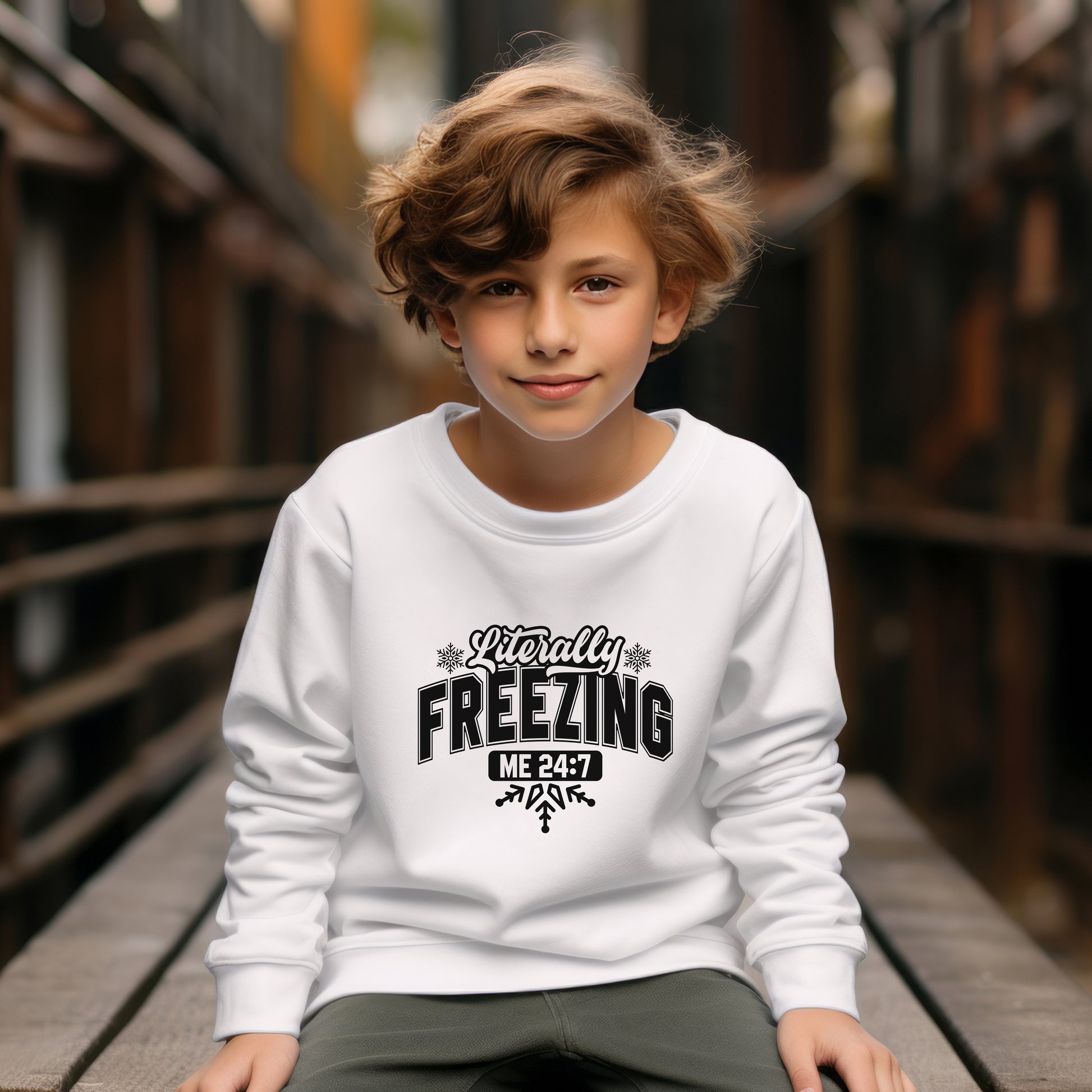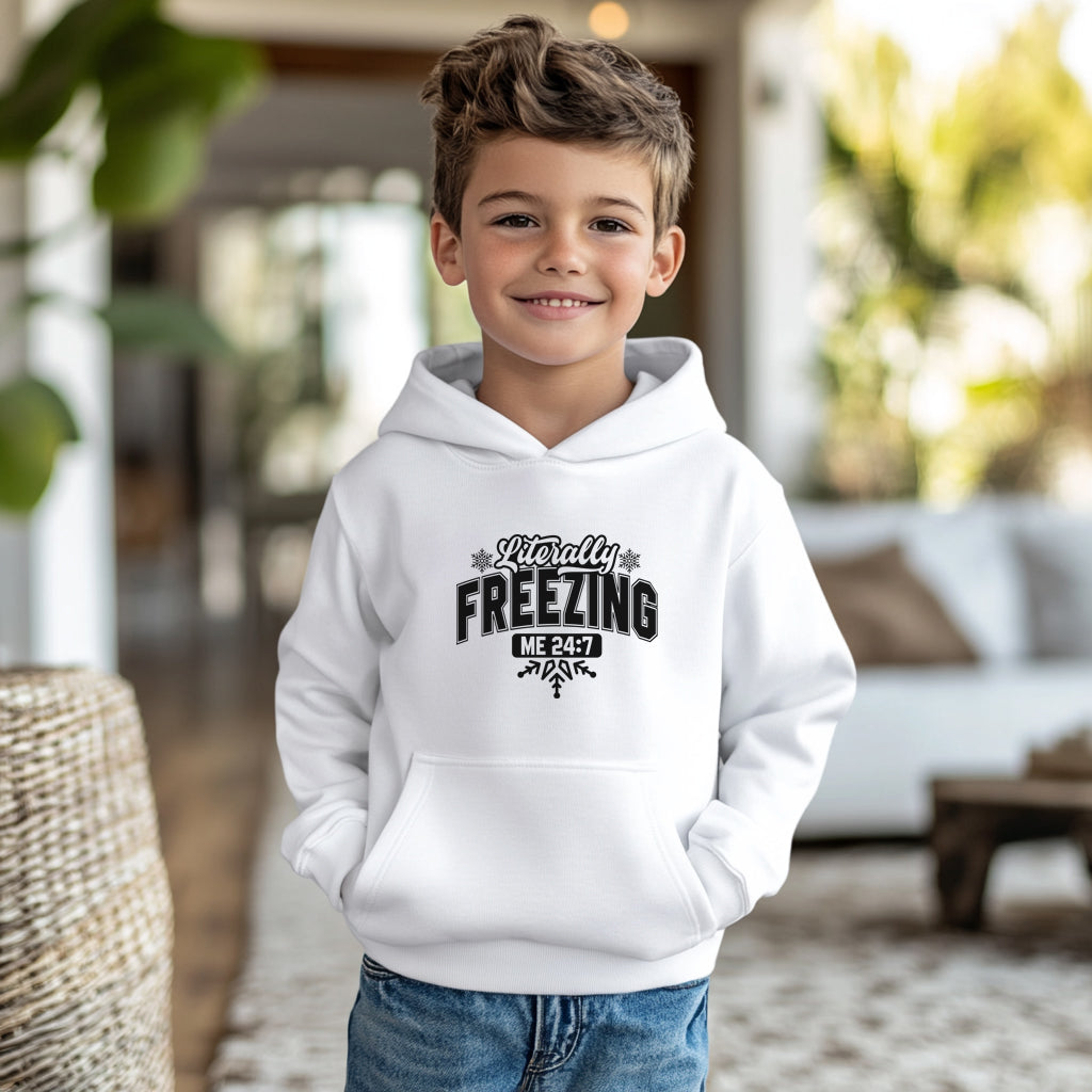 Do you tend to get really cold easily? This white shirt will help keep you cozy while letting everyone know you are freezing! It comes in either a sweatshirt or hoodie in kids' unisex sizes.