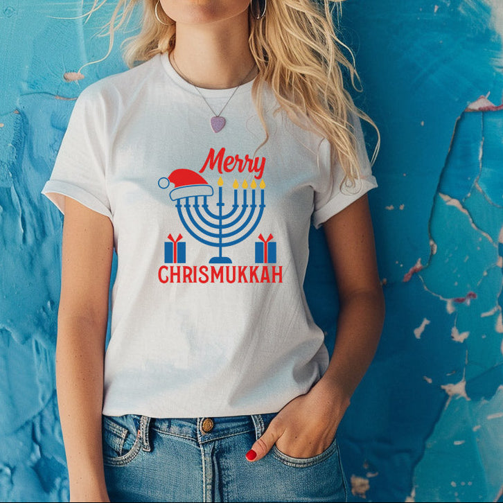 Do you know someone that celebrates the other winter holiday and want to show your support? This white shirt comes in your choice of a crew neck T-shirt, sweatshirt or hoodie in unisex sizes.