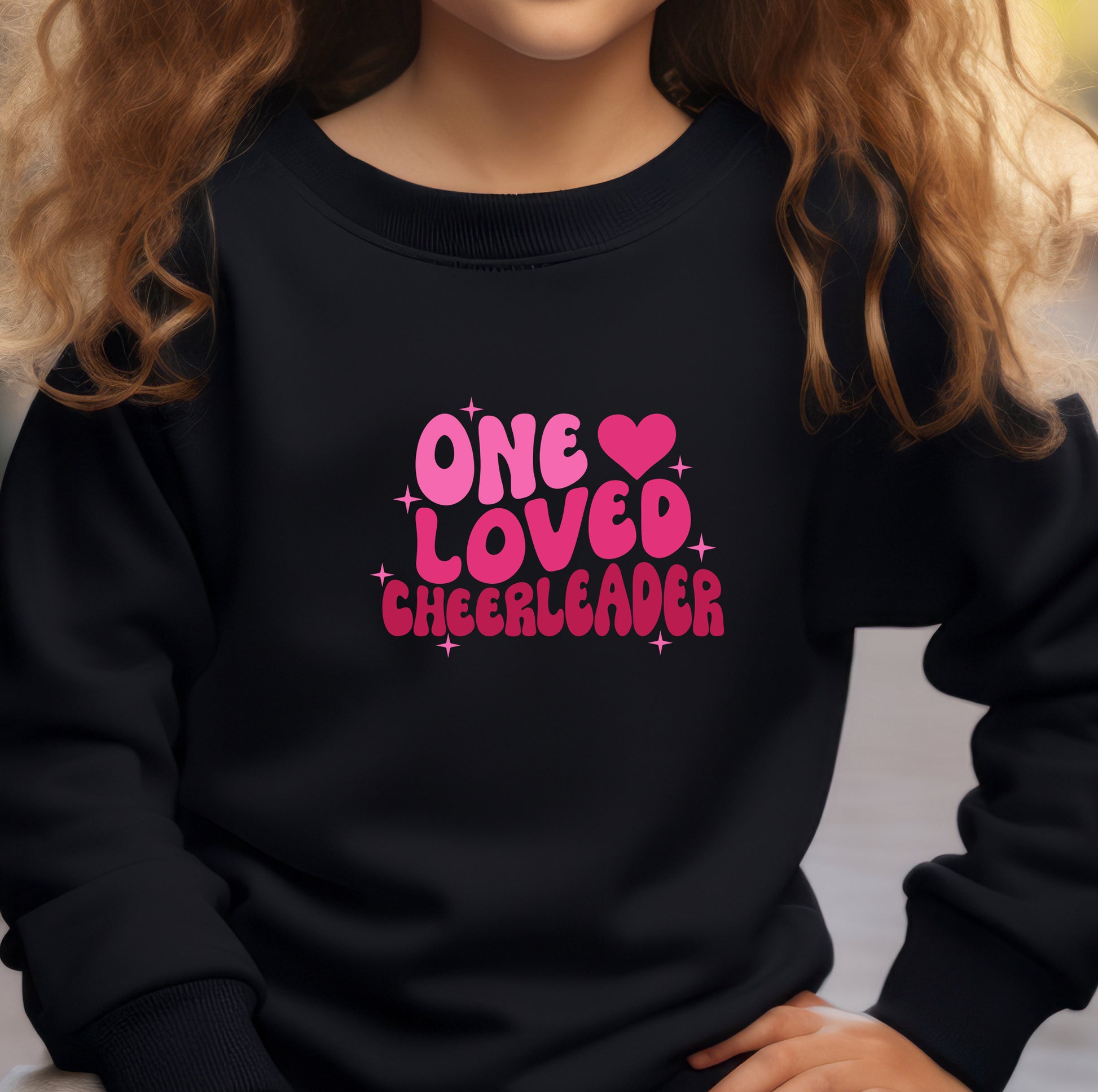 Show your favorite cheerleader how much she's loved! Get this black shirt in either a crew neck T-shirt, sweatshirt or hoodie in unisex sizes.