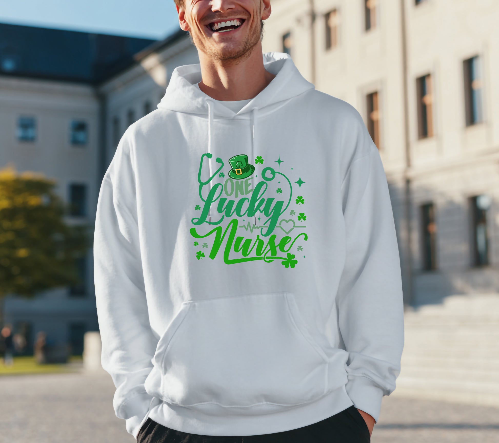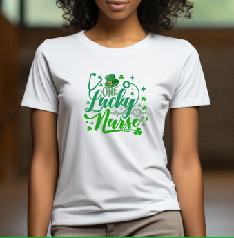 Celebrate St. Patrick's Day in style with our exclusive "One Lucky Nurse" shirt! Crafted from soft, breathable cotton, this white shirt is perfect for healthcare heroes who want to showcase their festive spirit while staying comfortable on the job. The vibrant green lettering adds a playful touch, making it an ideal choice for parades, parties, or simply spreading cheer at the hospital. Show your pride in your profession and your love for the holiday—grab yours today and wear it with pride!