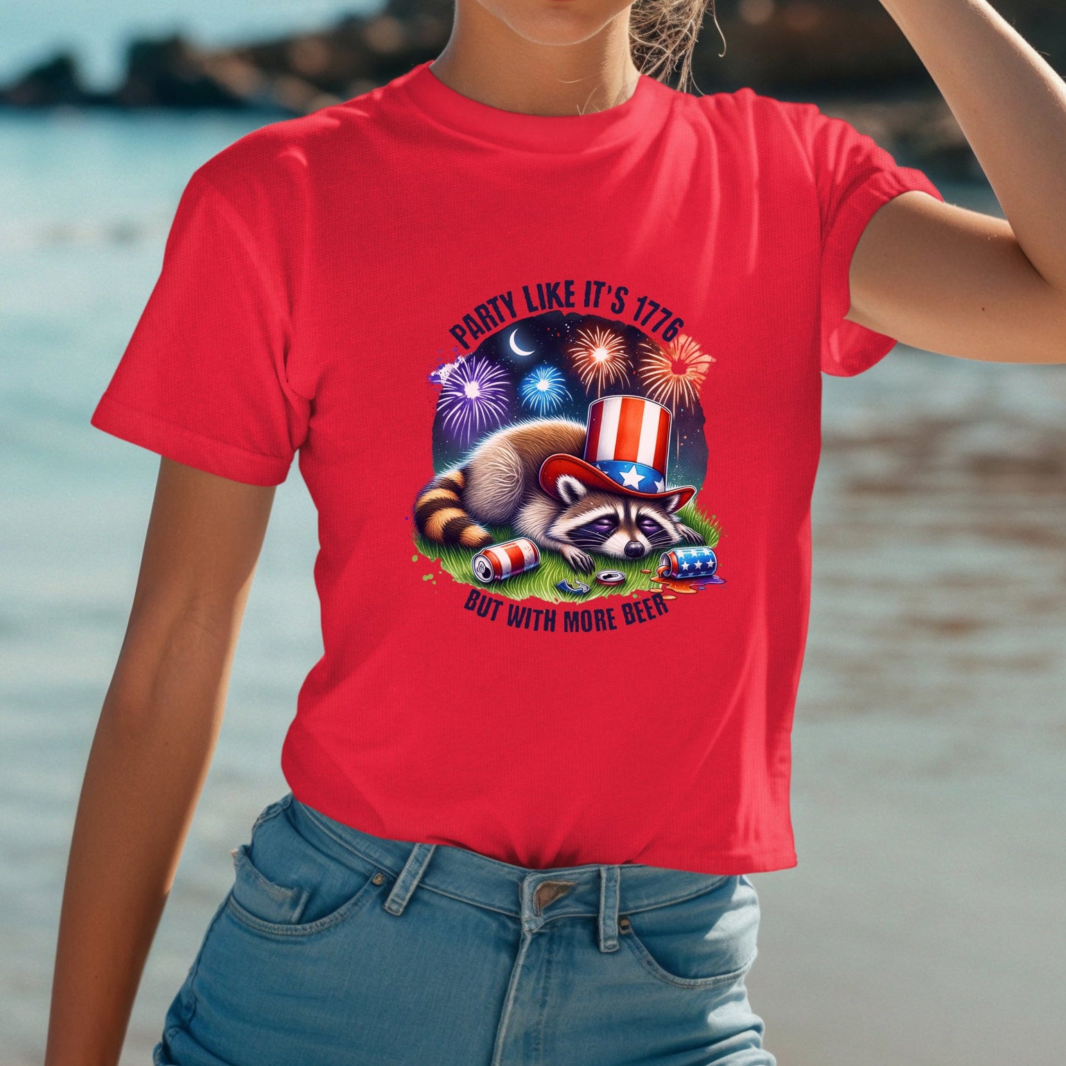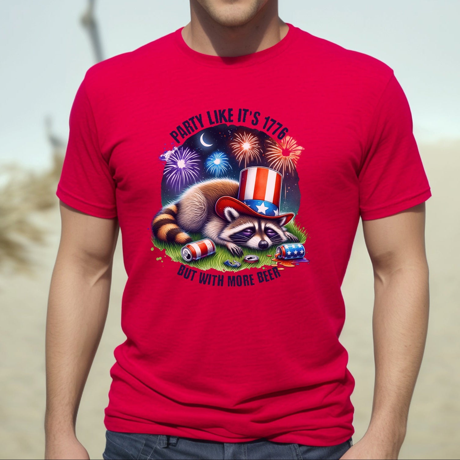Party like it's 1776! This red shirt comes in a crew neck T-shirt in unisex sizes.