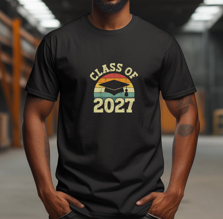 Celebrate your achievement in style with our Class of 2027 Graduation Shirt! Crafted from soft, breathable fabric, this shirt features a bold design that proudly showcases your graduation year, making it the perfect keepsake for this momentous occasion. Whether you're attending a ceremony, hosting a party, or simply enjoying a day out, this shirt is a comfortable and stylish way to commemorate your hard work and dedication. Wear it with pride and let the world know you’ve graduated!