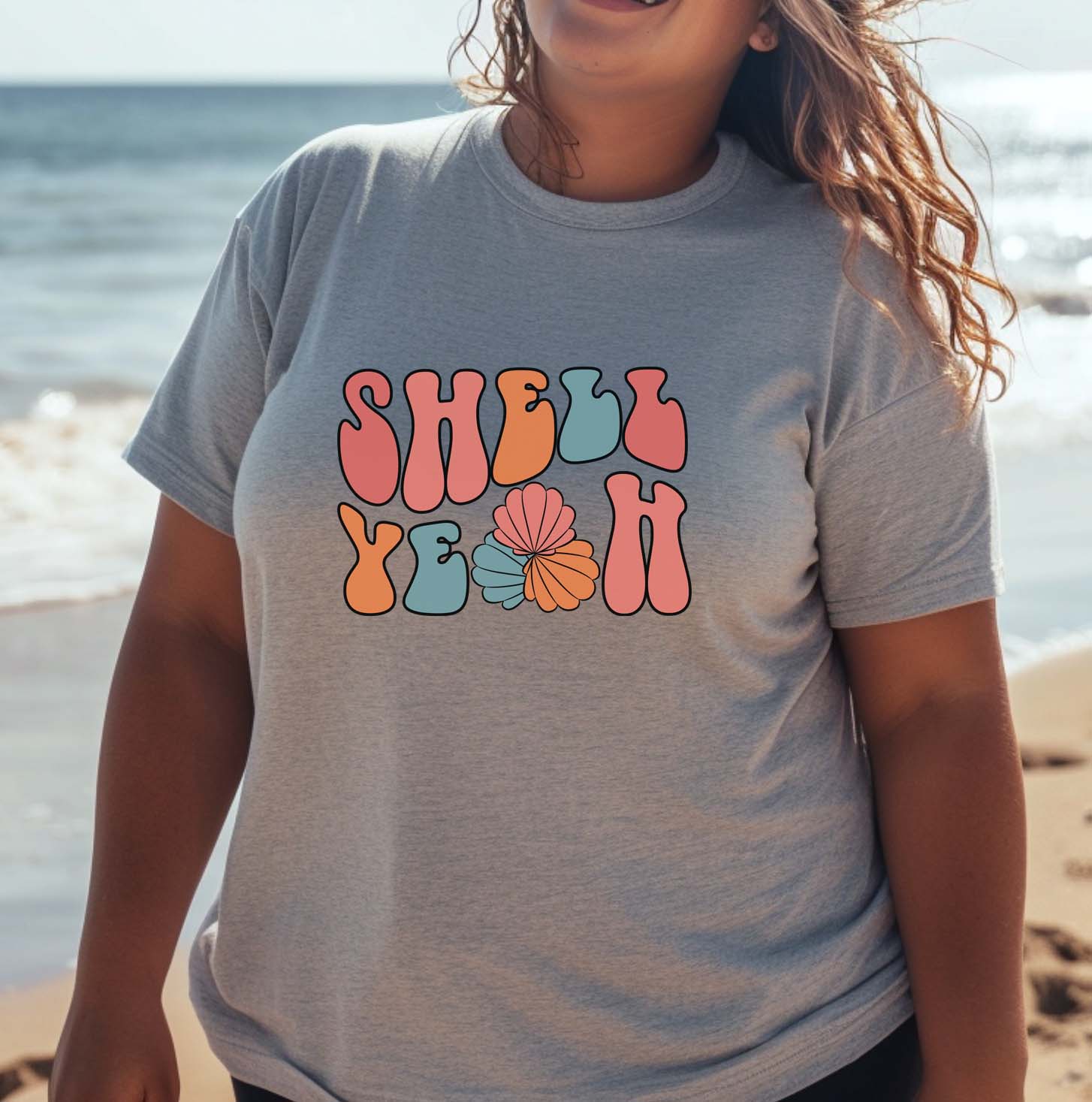 Embrace your inner beach lover with our "Shell Yeah" T-shirt! This fun and playful tee is perfect for those sunny days, reminding you to keep a positive vibe wherever you go. Made from soft, breathable fabric, it offers all-day comfort whether you're lounging at home or out with friends. Pair it with your favorite shorts or jeans for a laid-back look that radiates joy. Get ready to shell-ebrate life and spread happiness with every wear!