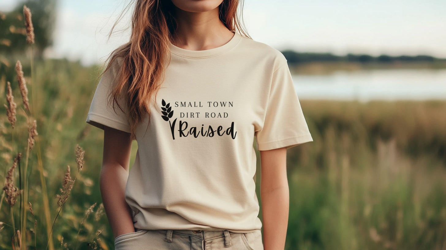 Embrace positivity and style with our "Small Town Dirt Road Raised" shirt! Perfect for those who love to express their vibrant spirit, this comfortable top is made from soft, breathable fabric that keeps you feeling great all day long. Whether you're out in the field or enjoying a casual day out, this shirt serves as a reminder to stay grounded and grateful. Pair it with your favorite jeans or shorts for a laid-back look that radiates good vibes. Make a statement and spread the message of gratitude—grab yours today!