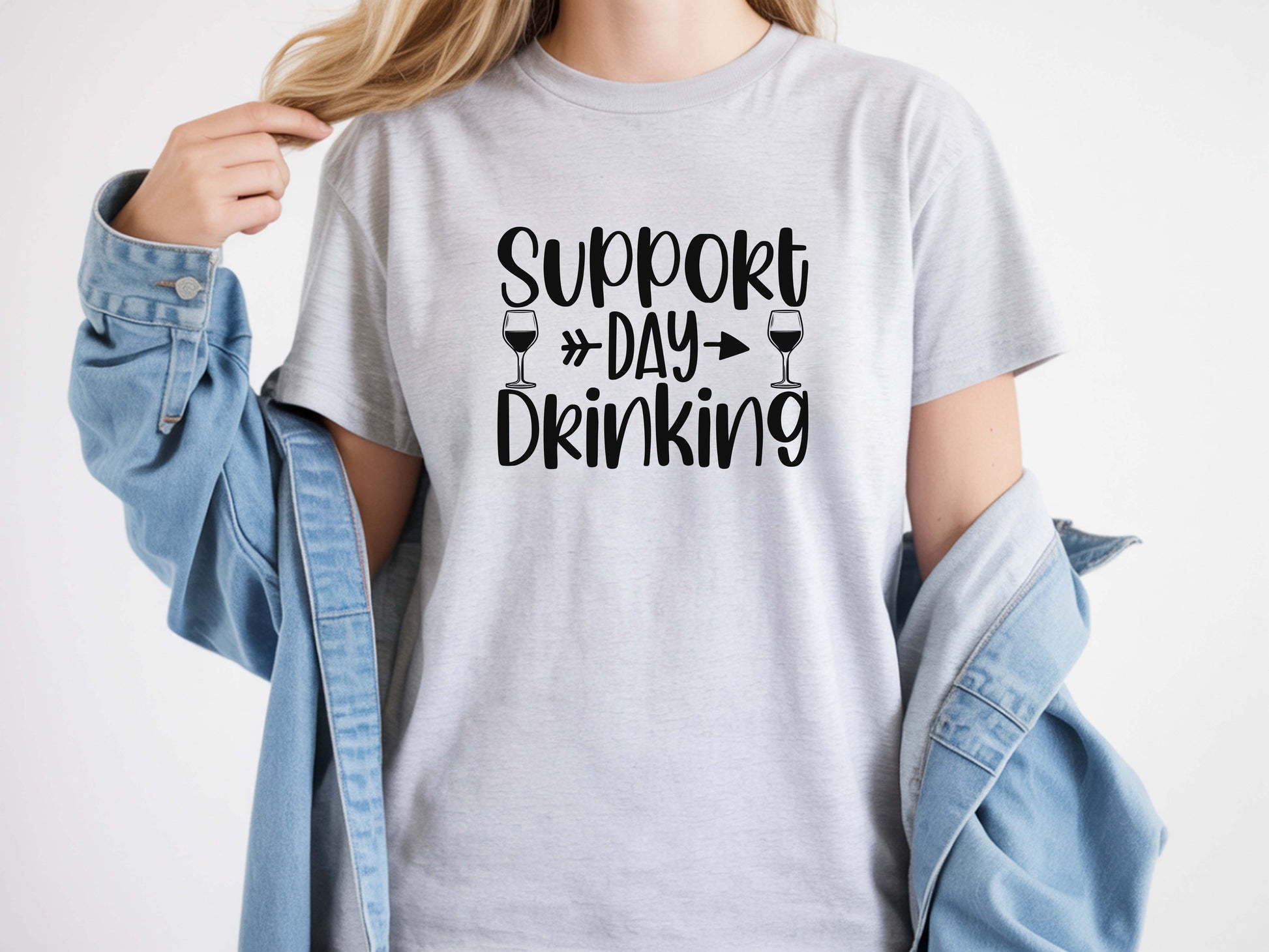 Embrace your playful side with our "Support Day Drinking" gray shirt! This funny and stylish top is perfect for those who believe that every hour can be happy hour. Made from soft, breathable fabric, it offers all-day comfort whether you're lounging at home or out with friends. Its witty slogan is sure to spark conversations and laughter, making it a must-have addition to your casual wardrobe. Grab yours today and wear your humor proudly!