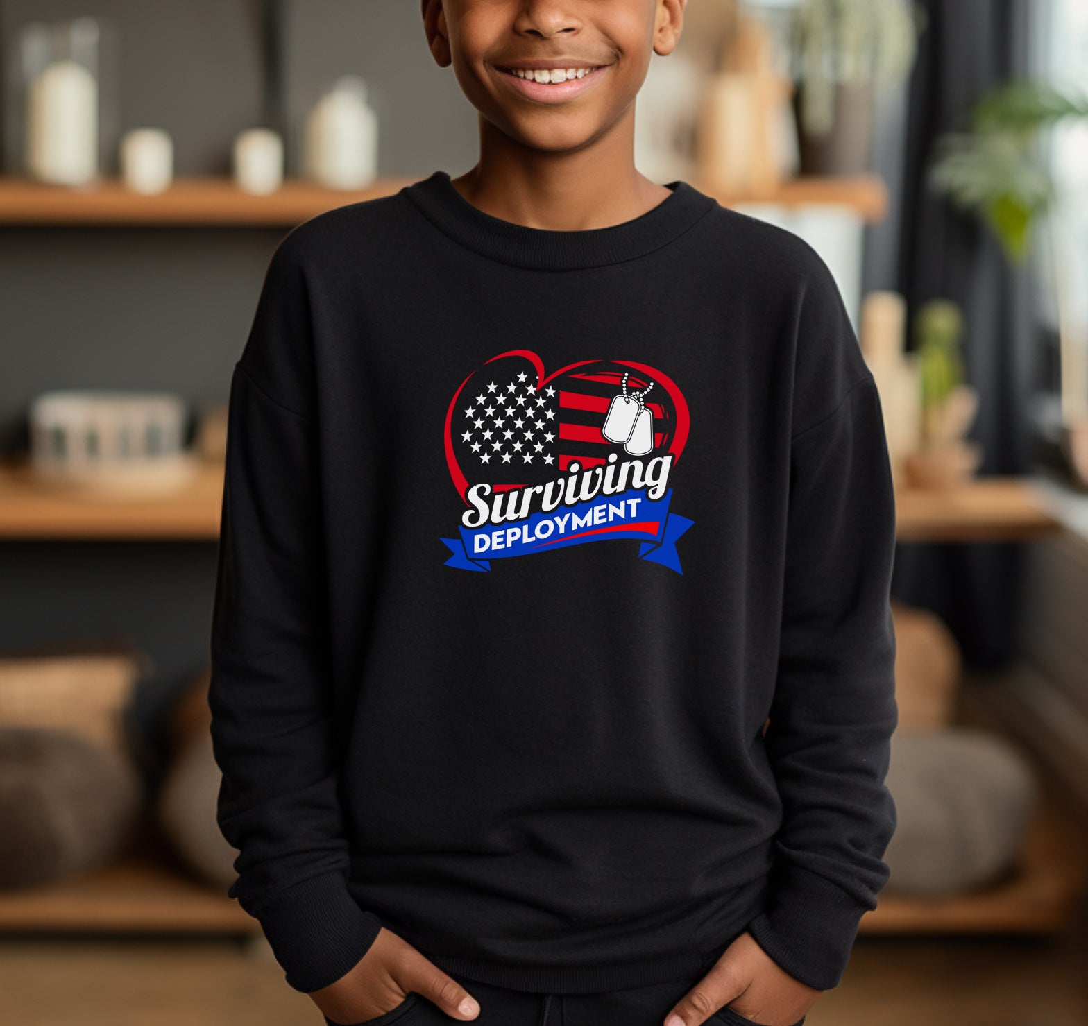 Deployment is hard for the whole family. Get this black shirt in either a crew neck T-shirt, sweatshirt or hoodie in unisex sizes.